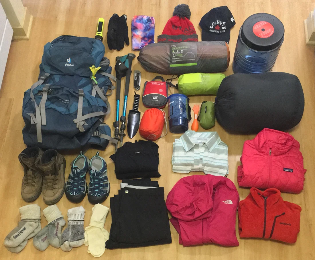 Deuter ACT Lite 60+10L Backpack: I love Deuter packs. Before I bought a Deuter I was using some generic backpacking pack that was a one-size-fits-all-humans sort of deal and it did not fit this human properly, yet I used it for nine months. Since buying the Deuter my only wish is that I had bought one earlier so I didn't have to walk all those painful miles with a heavy, ill-fitting pack on! The 60+10 size was able to (barely) hold all my gear, but even coming in at a hefty 47 lbs. this pack felt comfortable on my body.