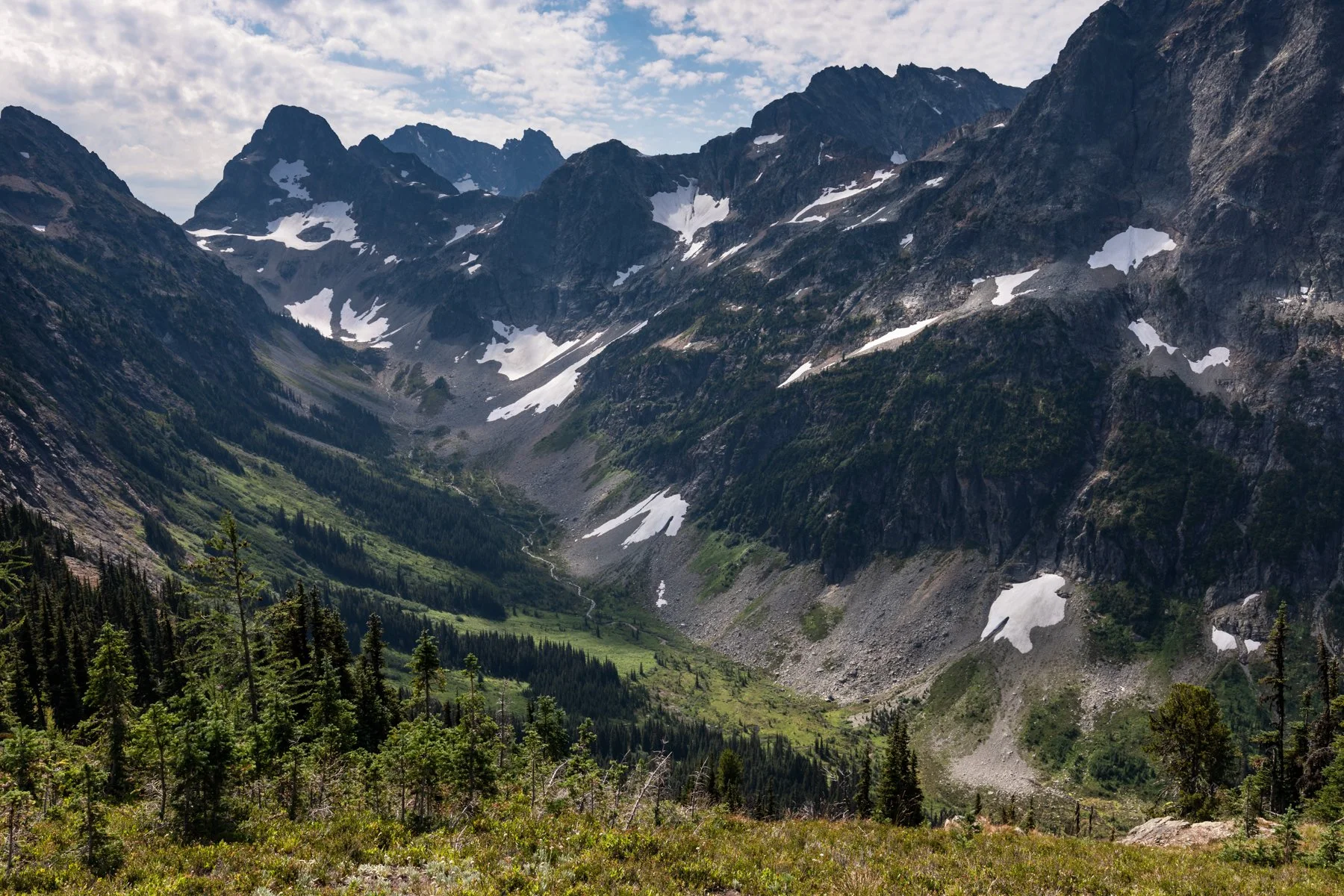 We reached Easy Pass—the boundary between Okanaogan-Wenatchee National Forest and North Cascades National Park—in two hours. The name “Easy Pass” seems like a little bit of a misnomer, though. Moderate Pass may have been more applicable!