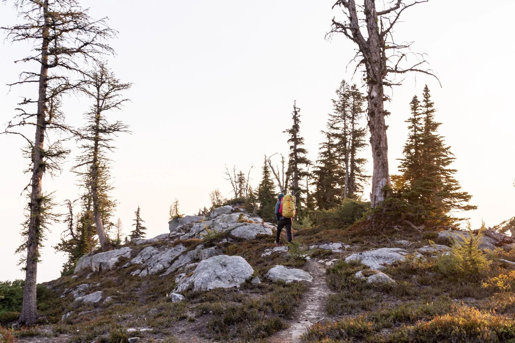 Due to the length of the day ahead of us we began hiking at sunrise. Smoke continued to sweep in around us until the views we had been awing over the previous two days were gone and in their place was a white wall.