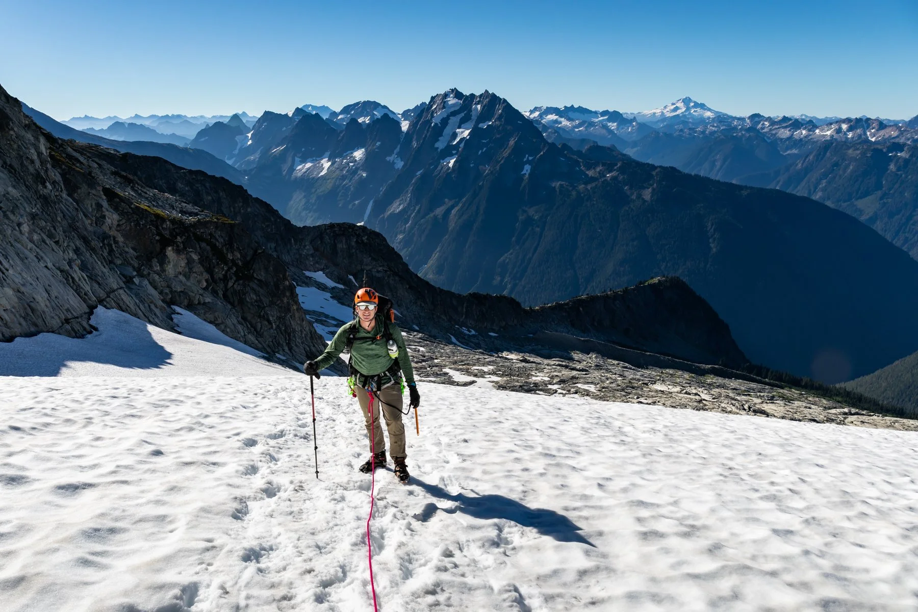 Alex hiking on the Eldorado Glacier