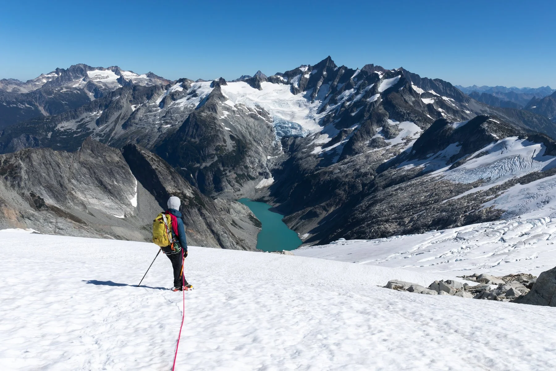 Alex rappelling onto the Klawatti Glacier