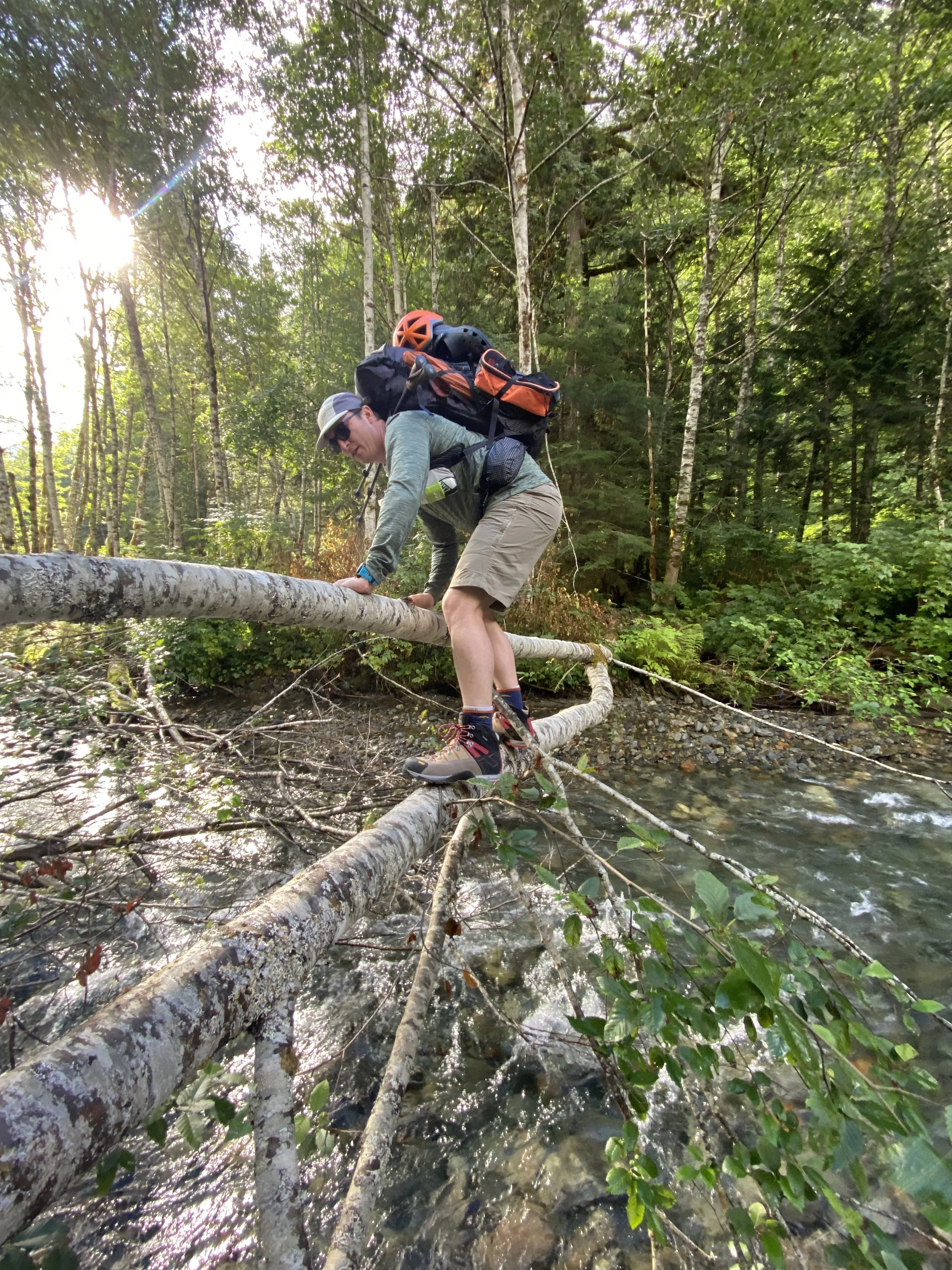 Alex crossing the creek