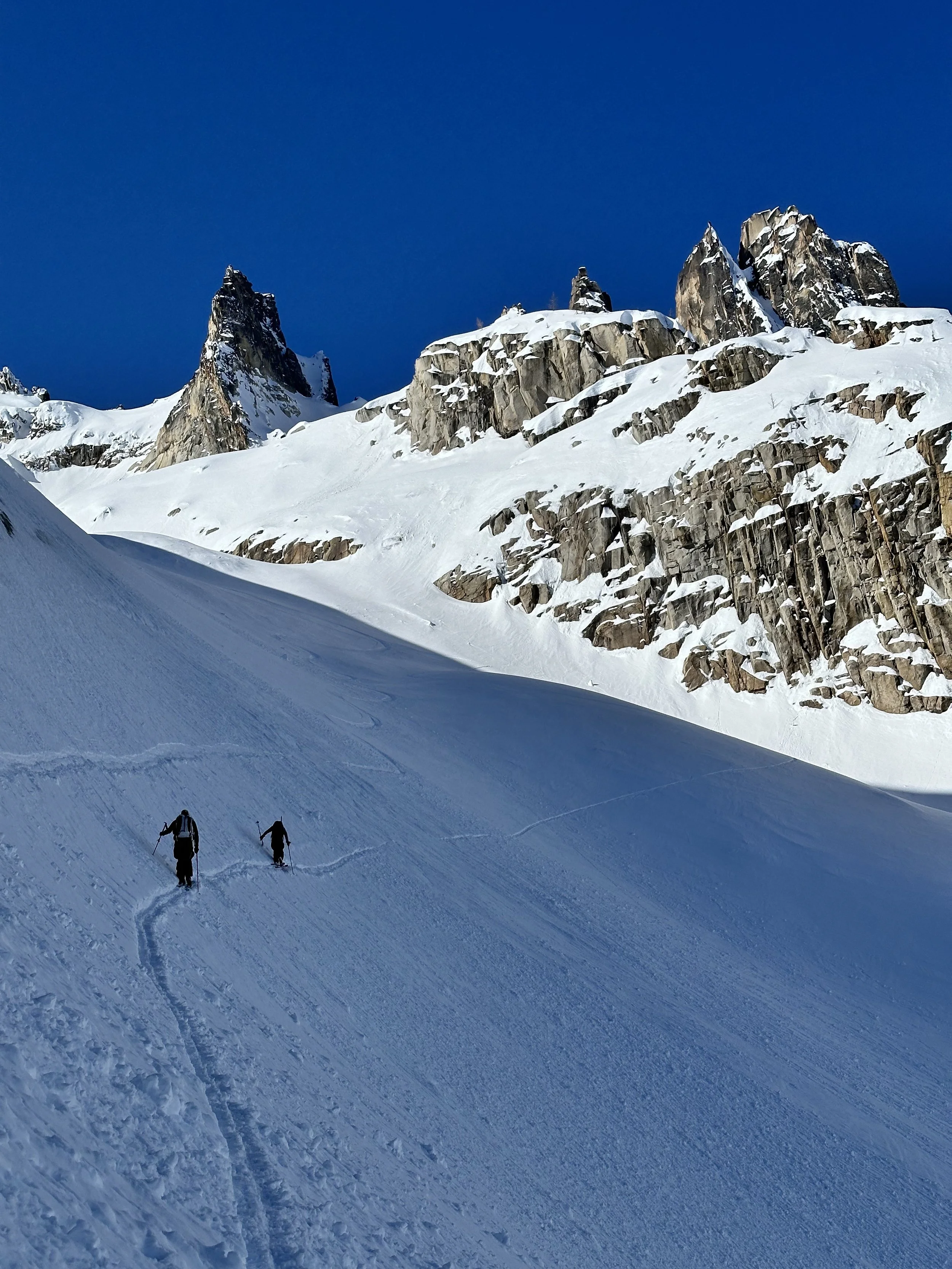 We skied two continuous lines down to 7,000’ and had the time of our lives. All of the toil and fear and stress of the approach vanished into a puff of snow behind my skis.