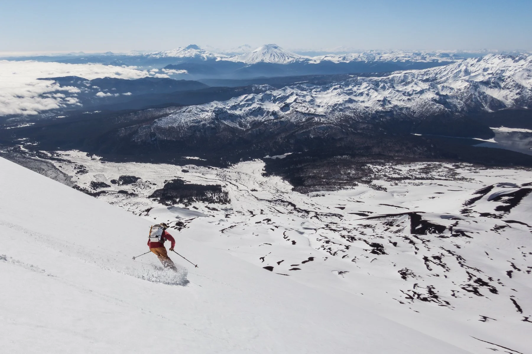 While staying in Malalcahuello, we climbed two volcanoes and skied superb storm laps on a snowy day. Our first day there, after three full days of travel from Seattle by plane and car, we had our biggest day of the trip. We climbed and skied Llaima, a 10,253’ volcano requiring a ~6,100’ ascent to reach the summit. It was a pretty big climb on tired legs, but that day was forecasted to be the most favorable of the entire trip, and you don’t sit out a favorable forecast like that. It ended up being my favorite day of the trip. The tour reminded me of spring skiing the volcanoes in the PNW, in fact, I kept thinking of the area as the PSW—Pacific Southwest—in my head. Chile is also located on the ring of fire, the Andes get battered by storms rolling of the Pacific, and the area is peppered with towering stratovolcanoes. The tour was made even more special by the fact that we encountered no other groups the entire day. We opted for the less-traveled north route which gave us access to a steep, wide, and endlessly fun run. It was quite the way to start off the trip.